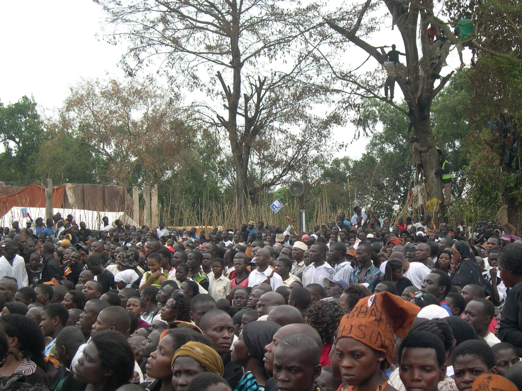 There people pushed, shoved, shouted, sweat, fainted, climbed the trees, mourned and sang as security guards from both kingdom and government blew futile whistles and waved threatening batons at the throng. When the Kabaka showed up, it was difficult enough simply to stand up, much less see him and his entourage. The lucky few who caught a glimpse spurred a huge roar from the crowd before succumbing to waves of rowdiness and returning to the task of avoiding a fall.